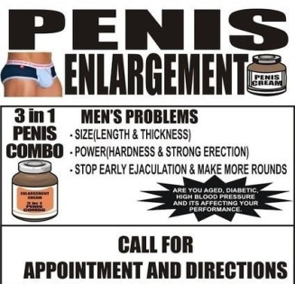 I had a small penis size and a weak erection and i couldn’t last long in sex and it has been a problem to me for years, my wife always get disappointed with me when ever we are having sex, i don’t last for up to five minutes, during sex, i have taken different medications, products and pills but no solution, then i went on the website for a solution on how to enlarge my penis and i got contact of Dr Ezra who help to cure erection and ejaculation problems with his products and also help to enlarge penis, i got in touch with him through on his email address and i got the product. Which i took for just a week and my ejaculation is now normal and my erection is hard and my penis got bigger, longer and thicker than before and now i can last long in bed. now 10 inches long on erection and of course very large round. Which i have stopped using his product after i got the result of the penis size I wanted because the more you apply the product the bigger, longer and thicker your penis will be. I am very happy for this Penis Enlargement product it worked effectively and permanent and has no side effects. He can help cure premature ejaculations, male infertility, Herpes, diabetes, male dysfunctions, low sperm count, to last long in sex, if you’re there with the same problems feel free to call/ WhatsApp Dr Ezra Deko on +27 71 009 6483 Email: menzhealth24@gmail.com