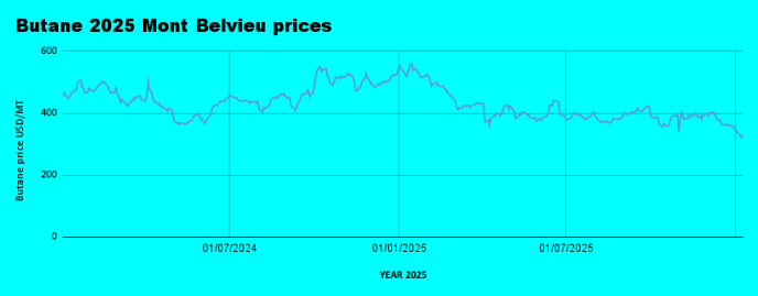 Butane: averaged $327.9/MT, down from $349.8/MT